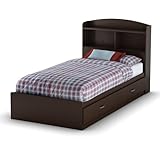 Includes: 1 x Twin Size Mates Bed (3359213) 1 x Twin Size Bookcase Headboard (3359098) Features: Bed Features: Twin mates bed (39") (3359213) Features 2 practical drawers Drawer interior dimensions: W35" x front to back 17 3/4" Metal handles with a antique pewter finish Box spring not required Smart Glide drawer slides feature stops and built-in dampers Chocolate finish Also available in sunny pine finish (3342213) and pure white finish (3360213) Headboard Features: Twin bookcase headboard (39"- 99 cm) (3359098) Easily accessible open storage compartments 2 holes through which to pass wires for better wire management Rounded corners for added safety Chocolate finish Also available in sunny pine finish (3342098) and pure white finish (3360098) Contemporary style Manufactured from laminated particle board Our products are made of EPP certified panels (Environmentally Preferred Product) Ready to assemble Adult assembly required This item's packaging is ISTA 3A-certified to ensure its integrity and your total satisfaction Shrink-wrapped packaging with reinforced corners to reduce the risk of shipping damage 5 year limited warranty Made in Canada Dimensions: Bed: 43"(W) x 77"(D) x 14"(H) Headboard: 42"(W) x 8"(D) x 42"(H) Finish: Chocolate Read more
