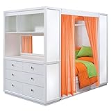 TweenNick The Retreat Full Bed by Lea Children's Furniture The Retreat Full Bed in the TweenNick Collection is an all inclusive private sanctuary for your teen or tween. Bed includes magnetic dry erase panels for displaying photos, notes and artwork; four sheer, orange curtain panels as shown; and plenty of storage shelves, drawers for clothing and underbed storage for quick clean ups! Bed Features: High Cabinet: 1 long shelf (55"W x 10"D), 2 corner shelves (10"W x 10"D), Magnetic dry-erase panels Six Drawer Base: 6 Drawers that include white with polished nickel insert knobs and orange seaflower knobs. Magnetic dry-erase side panels. Drawers extend completely out of the case, providing more useful storage space with easier access to drawer contents. Automatic drawer stops to prevent drawers from falling out of the case. Hand sanded to create a smooth interior and finished with stained protective top coat to provide a snag free drawer interior. Traditional dovetail construction on drawer fronts and backs, providing strength and durability. Drawer bottoms are reinforced by corner blocks and center rails. Lead free child safe finishes that meet all US Safety requirements. Slat pack included Bed Rails Underbed Storage Unit (59"W x 19"D x 14"H Hutch Unit (above and inside bed) 2 Storage Areas (Left top 18"W x 16"D x 17"H; Right top 37"W x 16"D x 17"H), 1 open area (Bottom 55"W x 16"D x 21"H), 2 corner shelves. Magnetic dry-erase side panels. With roots that stretch all the way back to 1869, Lea Industries has been adding its signature style and design to homes around the United States for more than a century. Children's furniture makes up the cornerstone of this topnotch manufacturer's lineup, and Lea has always managed to produce functional, modern - yet sophisticated - furniture for children. Furniture that bears the Lea name is always high quality, versatile and attractive. Read more